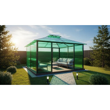 Конструкции из этого материала предохраняют от осадков, пропускают свет и сохраняют тепло. Он в 3 раза лучше задерживает тепло, чем стекло. К тому же ячеистая структура рассеивает солнечный свет, благодаря чему поликарбонат идеально подходит для создания теплиц, навесов и зимних садов. При этом он имеет защитное покрытие от ультрафиолета, что положительно отражается на здоровье людей и препятствует выгоранию отделочных материалов в помещениях.